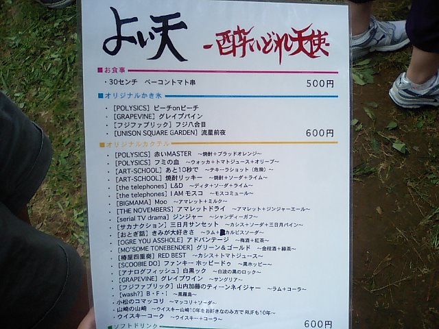 今日はパフューム見て、チャットモンチーみて、andymoriみて、トライセラみて、ナッシングみて、ナッシングで寝て、yachtちら見て、田中みて、ウルフルズみたぉww