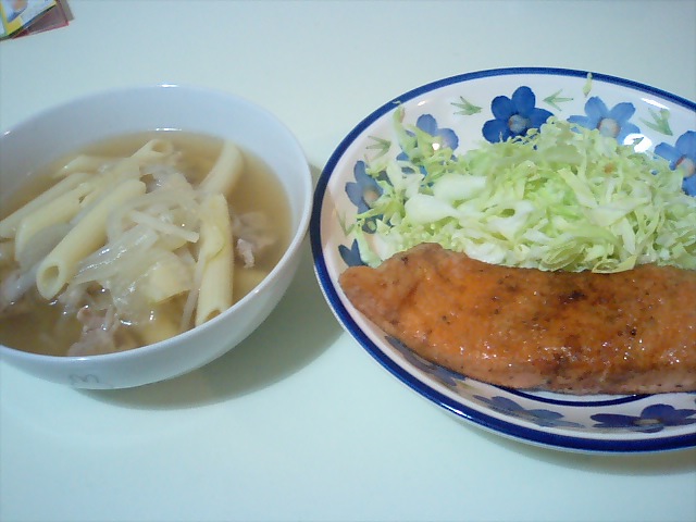 さてこんばんは。写真は昨日たくんが作った和風と見せかけた?コンソメスパゲティー。たくんのスパゲティー久しぶりに食べたけどやぱおいしかた。