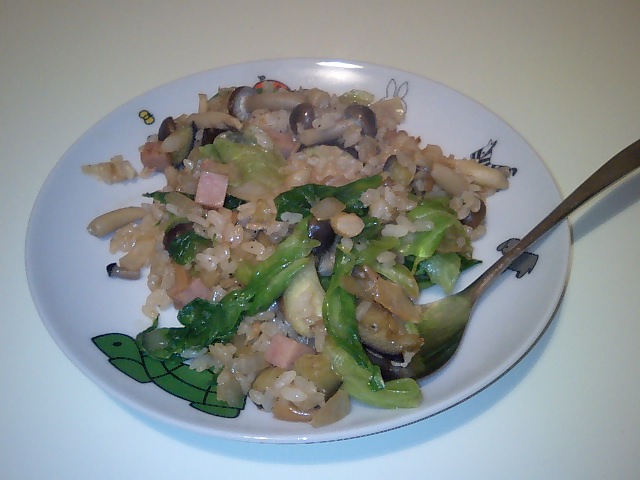 ちゃんと夕飯作ったぉ(*´∀`*)野菜たぷりだにょーんww炒飯だけど。