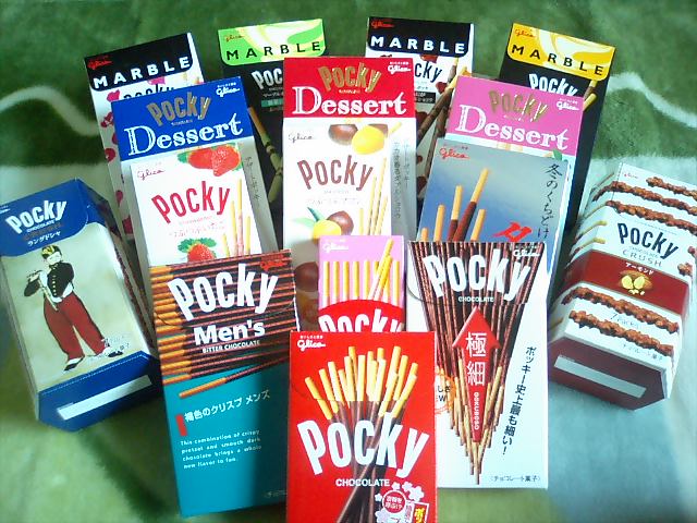 ポッキーが日本からのおみやげです。わっきーの友達が好きなんだって。3軒くらいスーパー回って色んな種類集めたからね(笑)