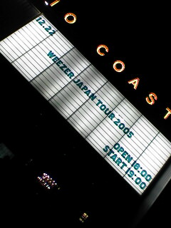 今日はweezer!!!!!!!!すごいのすごいの。超楽しいの。外は風が強くて超寒かったけど。初めて洋楽なワンマンを見たんだけども、なんですかあの盛り上がり方は!!!!!!モッシュが尋常じゃないよ(苦笑)あたしweezerって結構落ち着いた曲のイメージでどんなライブになるのか想像出来なかったんだけど行ったら想像を超えてた(笑)weezerコールは絶えないし、モッシュが激しくてあちこち行けるし(最終的には4-5列目ぐらいにいた)、なにより男の人が多い!今まで見たライブの中で一番多いんじゃないかと思ったよ。恐るべしweezer。